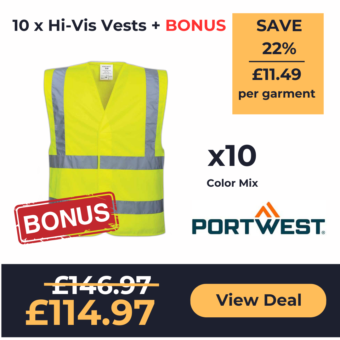 10 Hi Viz Vests in Orange or Yellow with left breast Logo + 🎁 FREE Bonus Offer!